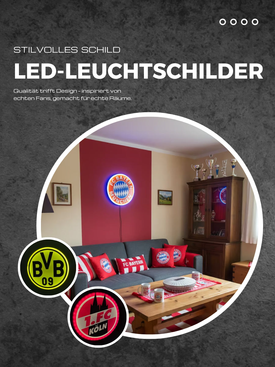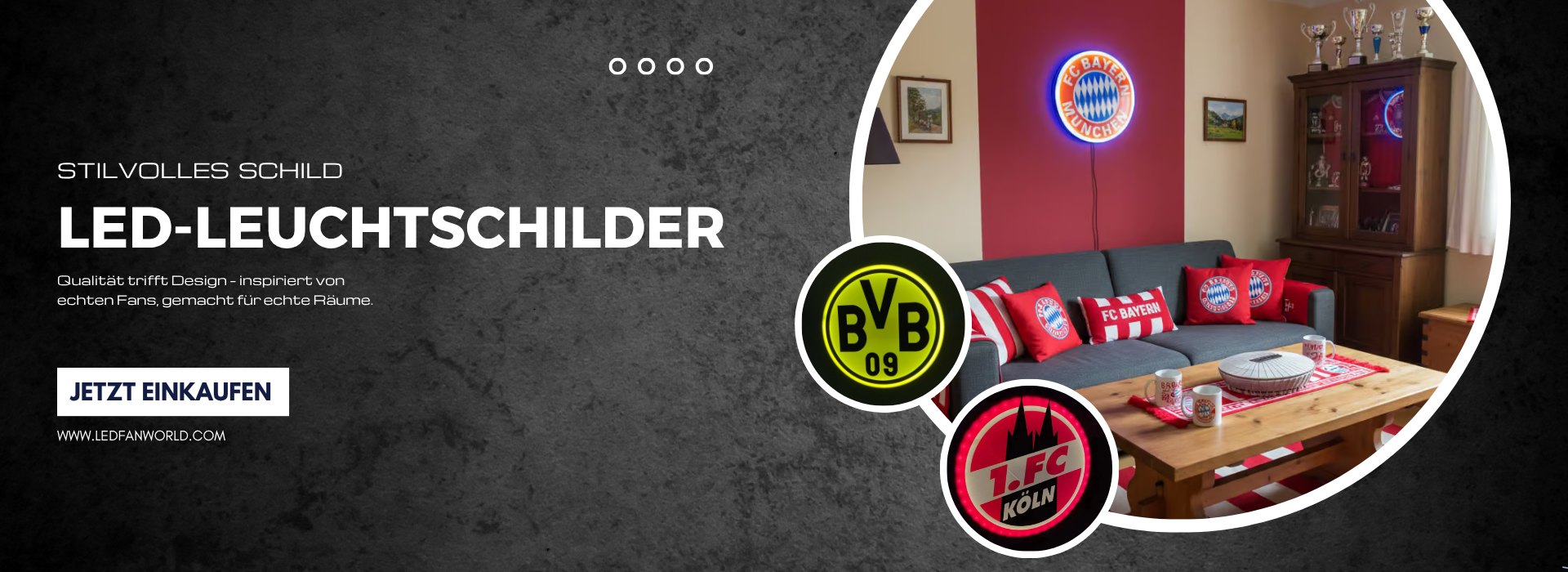 Jeder echte Fan weiß: Fußball ist mehr als nur ein Spiel – es ist ein Gefühl. Mit unseren hochwertigen LED-Schildern bringst du dieses Gefühl direkt an deine Wand und machst dein Zuhause zum Tempel deiner Leidenschaft.