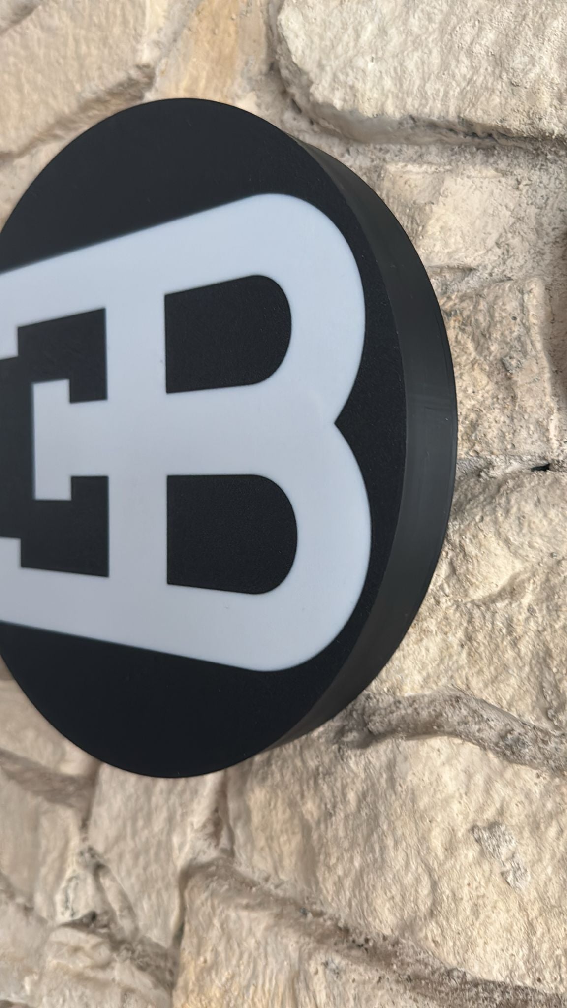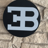 Das ikonische Bugatti-Logo mit dem roten Oval und den weißen Lettern leuchtet kraftvoll und detailgetreu – perfekt für Liebhaber von Supersportwagen und zeitlosem Design. ✨🔥