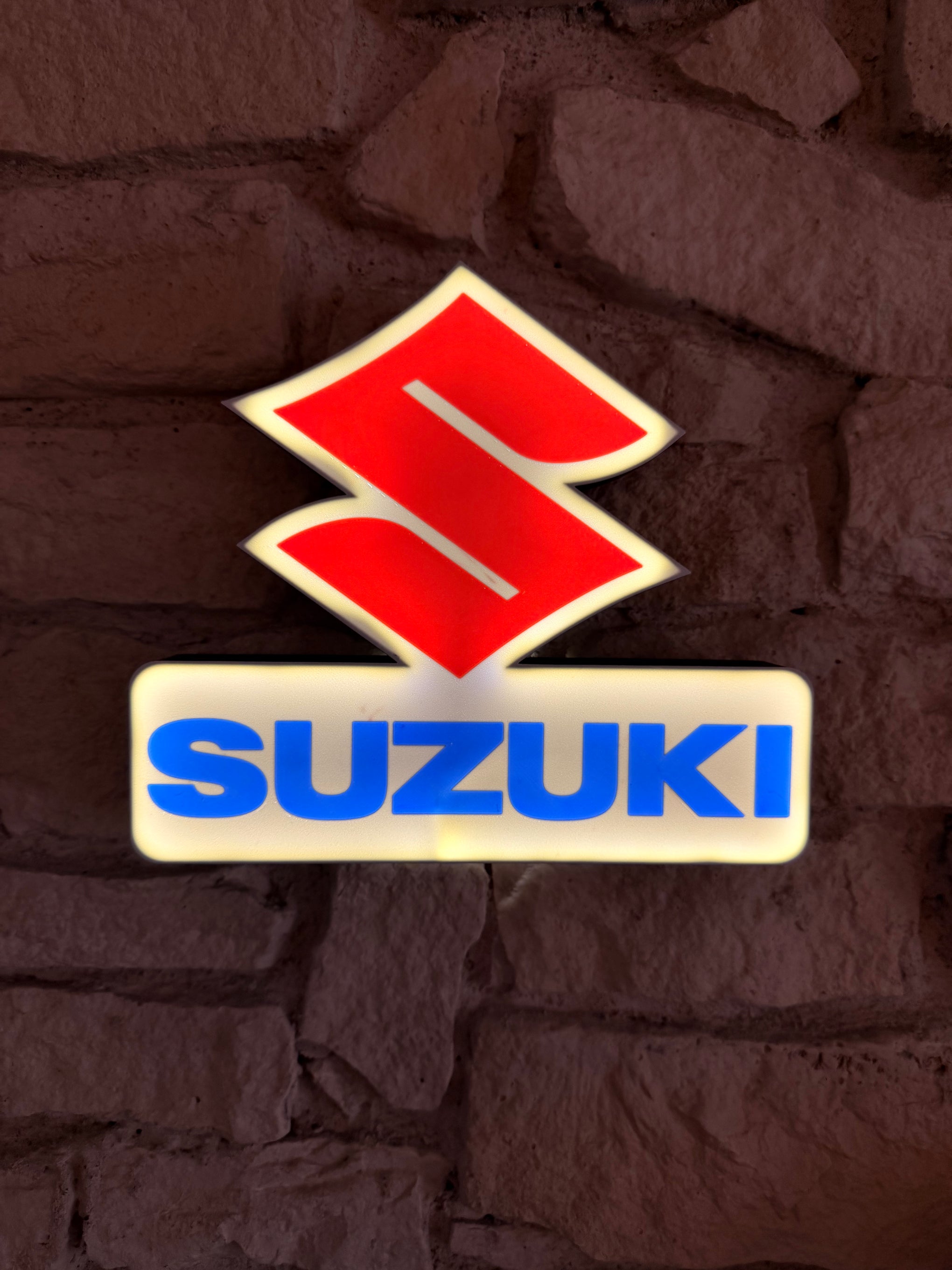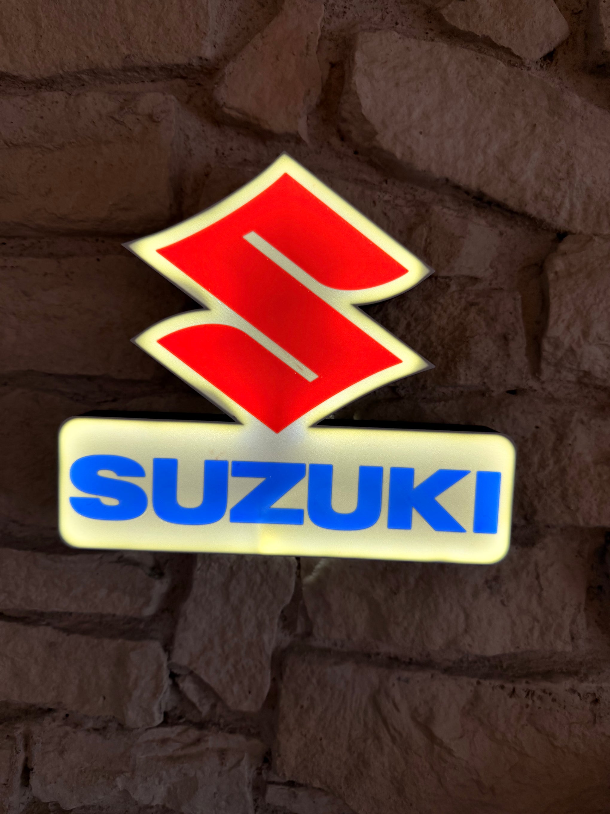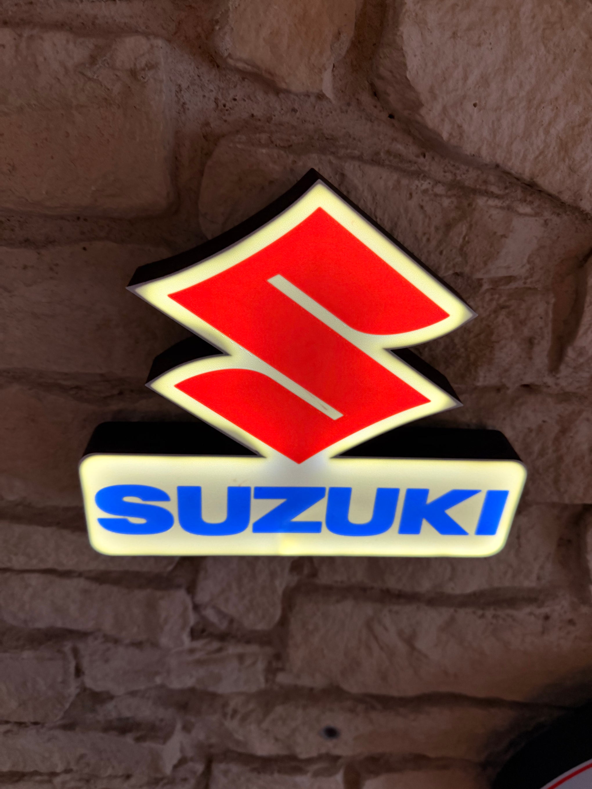 Diese Suzuki LED Lampe ist ein schlichtes, modernes Deko-Element für Fans der Marke Suzuki. Das klare Design mit gleichmäßig leuchtendem LED-Rand setzt das Logo dezent in Szene und passt ideal auf Schreibtisch, Regal, Sideboard oder Werkbank.