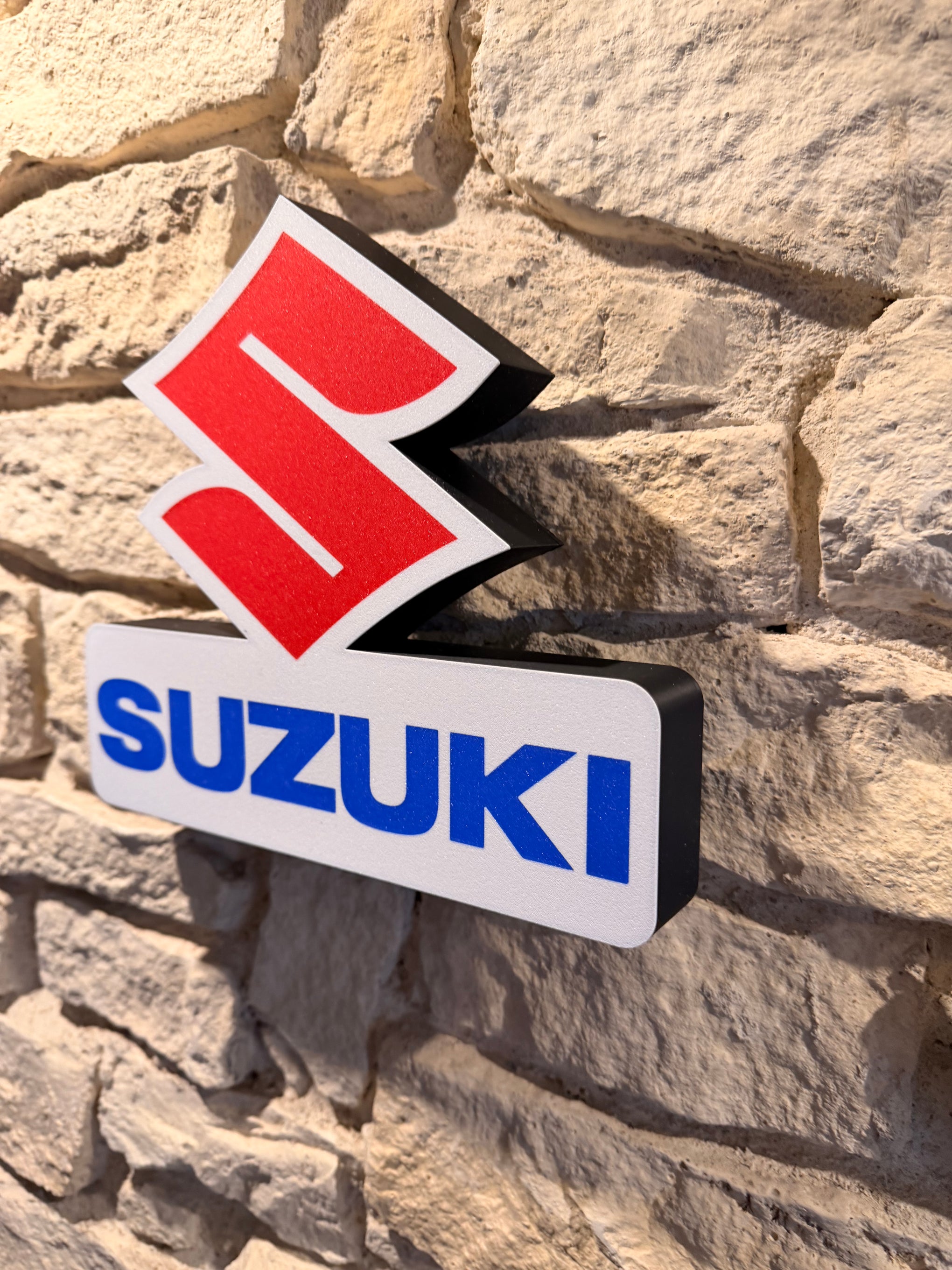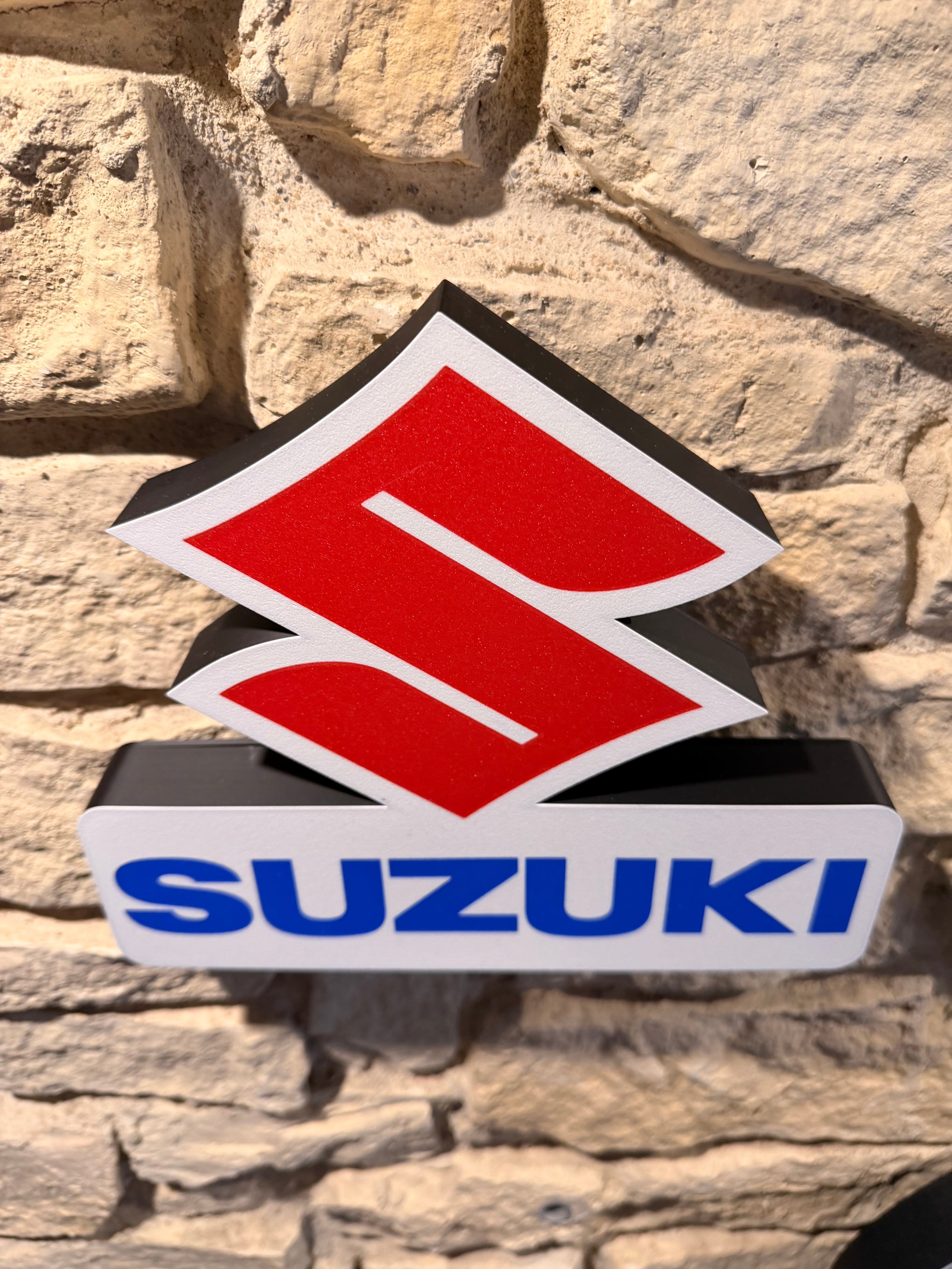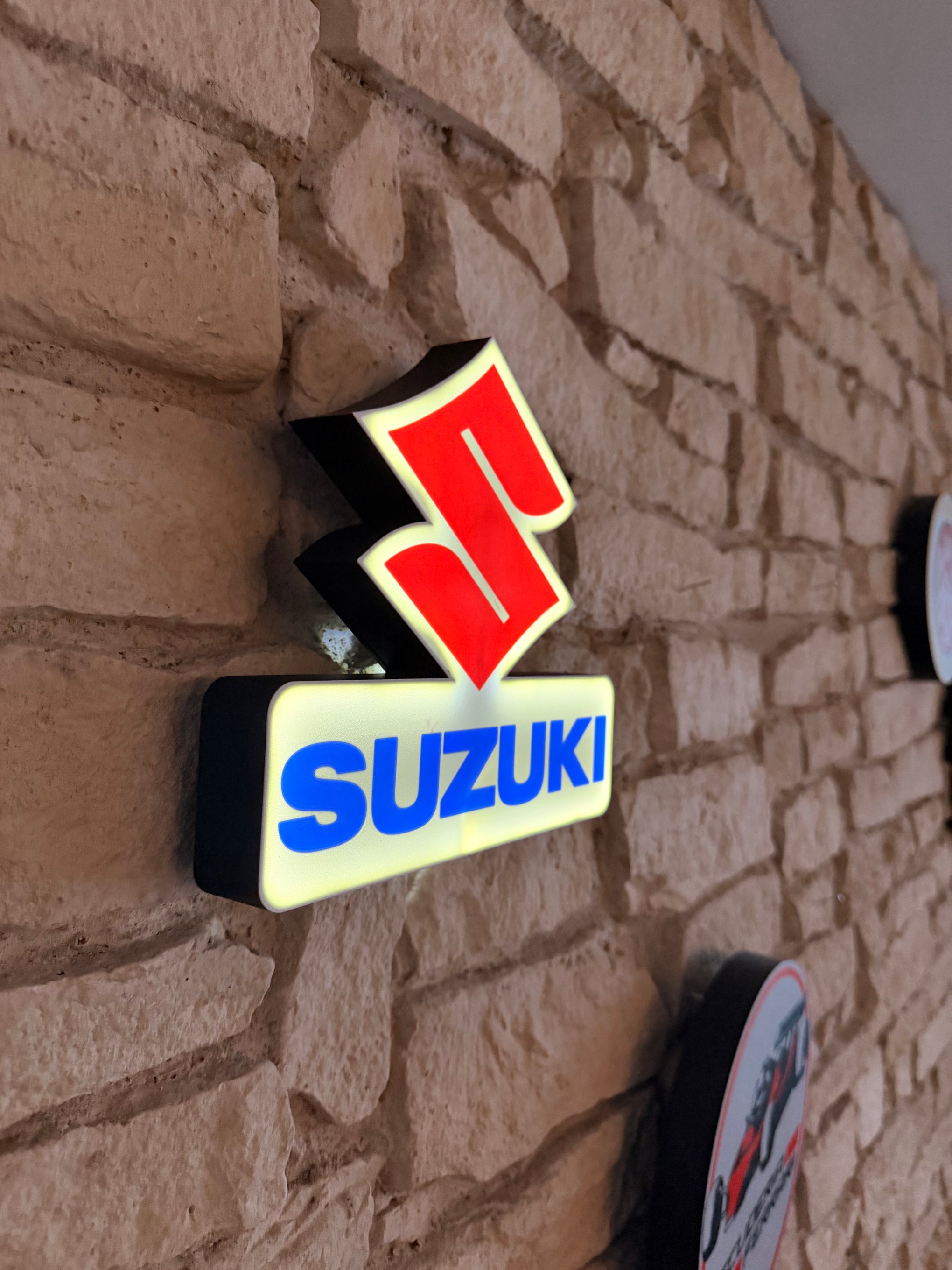 Diese Suzuki LED Lampe ist ein schlichtes, modernes Deko-Element für Fans der Marke Suzuki. Das klare Design mit gleichmäßig leuchtendem LED-Rand setzt das Logo dezent in Szene und passt ideal auf Schreibtisch, Regal, Sideboard oder Werkbank.