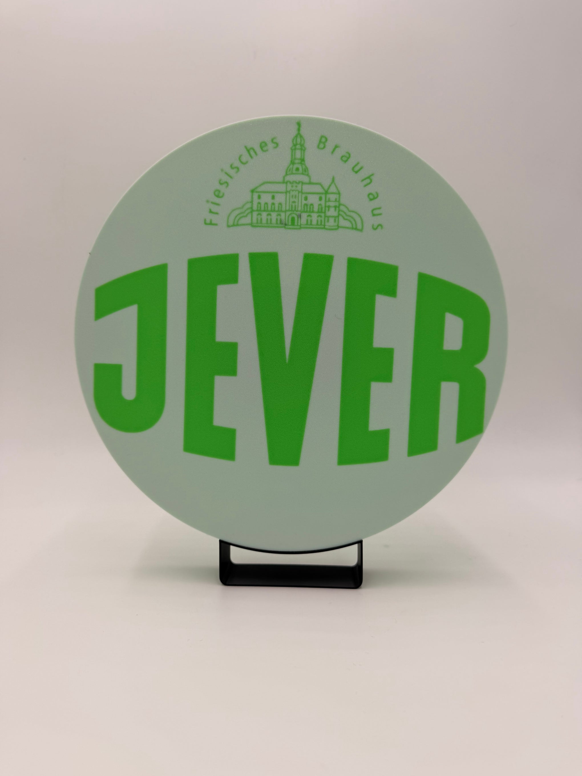 Runde Jever LED-Lampe in 23 cm, 3D-gedrucktes Logo, Frontansicht