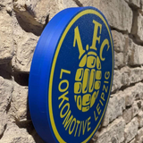 FC Lokomotive Leipzig LED Lampe in 24 oder 34 cm 🔵🟡 Mit Batteriefach oder USB-Kabel, wählbar mit Standfuß oder als Rohling. Nachhaltig produziert für echte Fans. 💡