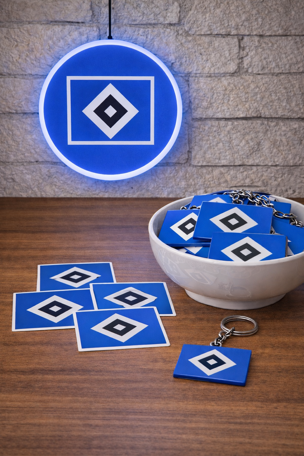 Hamburger SV LED Lampe Mini 18 cm – Fan-Bundle inkl. Schlüsselanhänger, 5 Sticker & USB-Stecker (Copy)